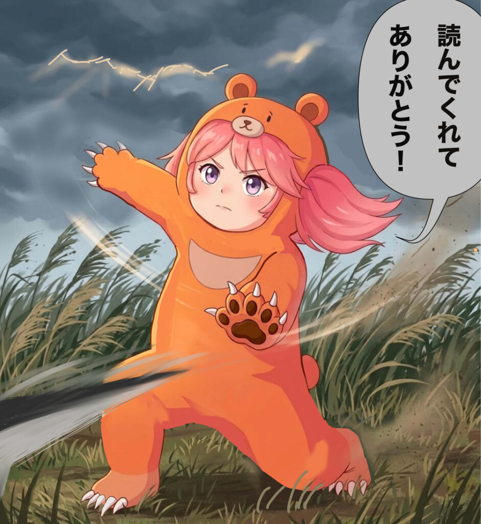 指が三本のツキノワグマでマタギを欺く知能と人を恐れない度胸、鋭い爪攻撃をもつスーパーツキノワ。マタギには勝てるが忍者相手だと厳しいためBとした。