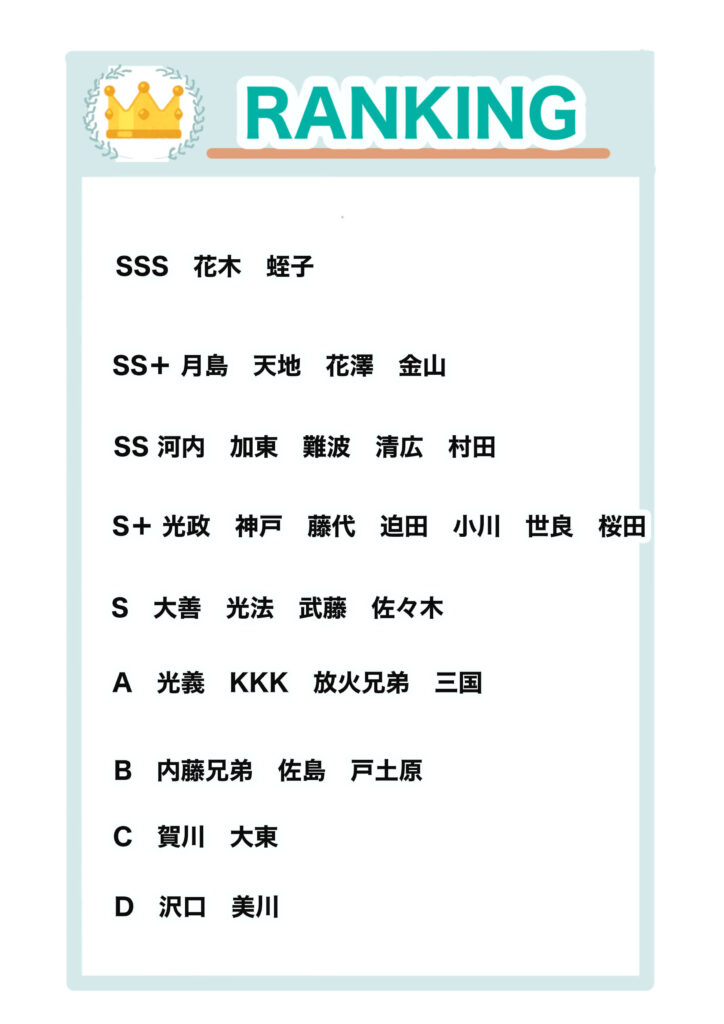 武装姫川、武装村田、花に勝利したためSSSとした。
