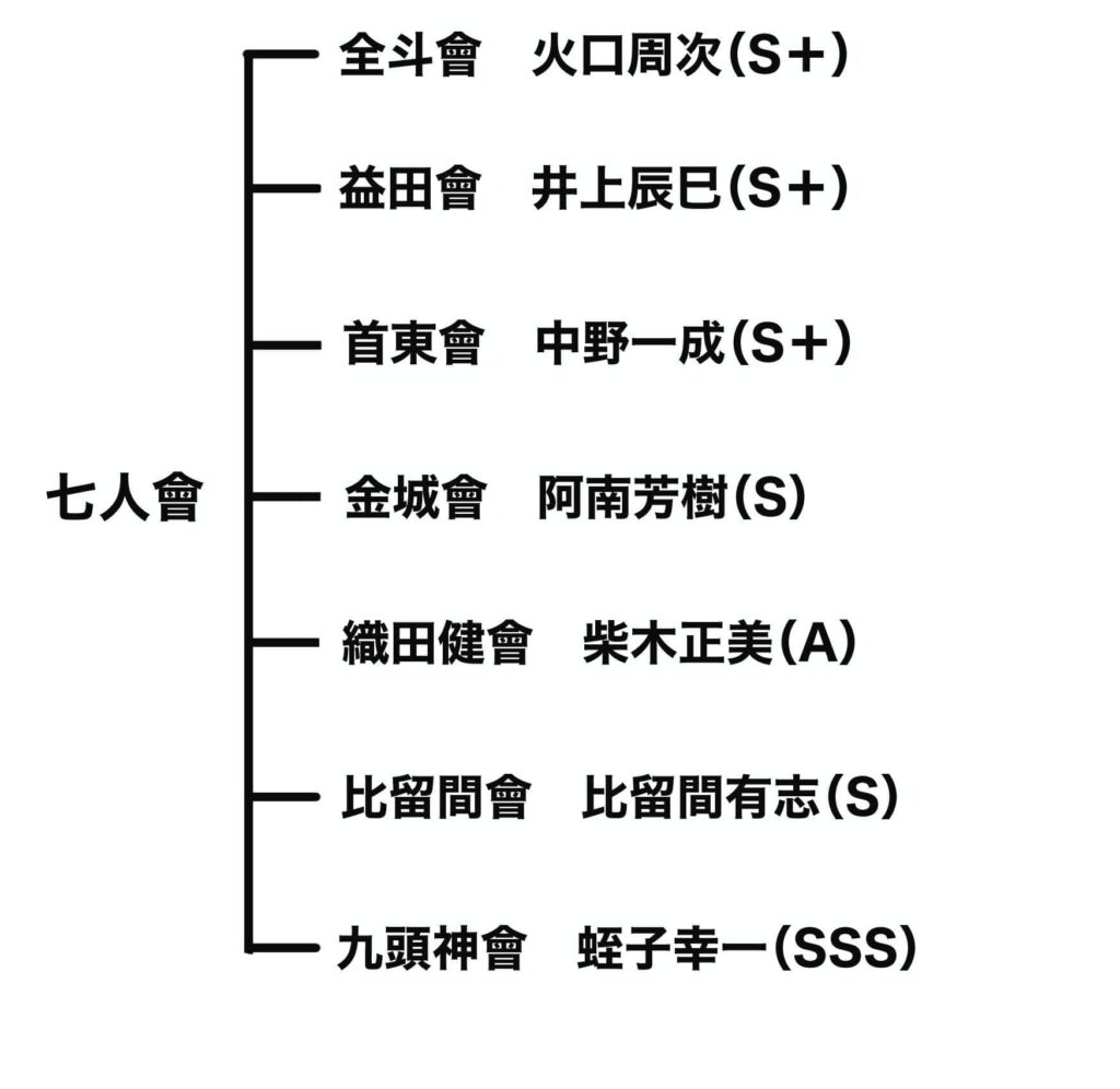 負け越してはいるがSS+の天地を手こずらせ、七人會の中野にも伊丹戦の怪我がなければ勝っていた?のでかなりの強さと思われる。